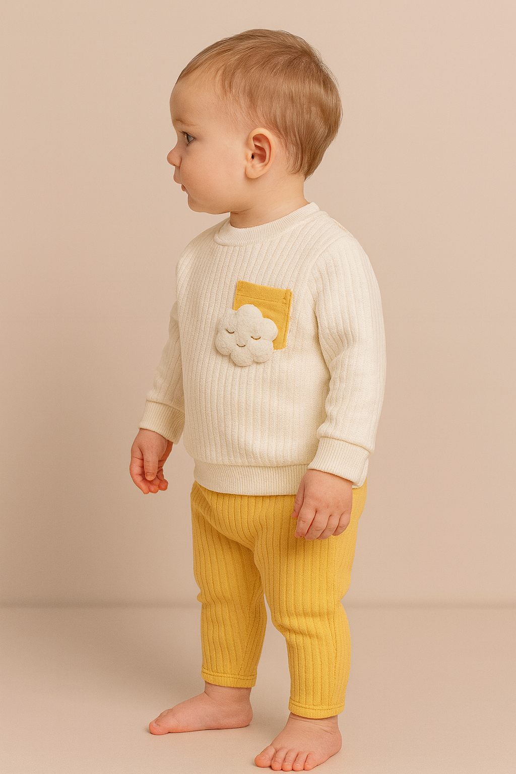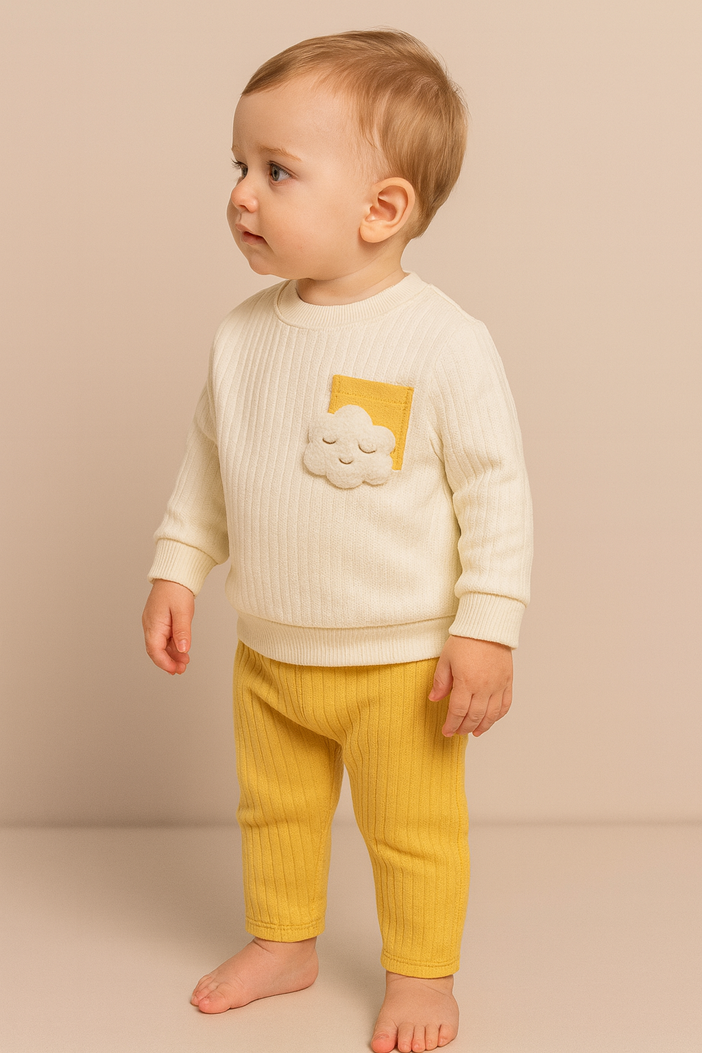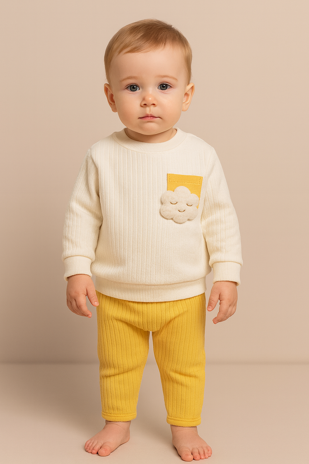 Erkek Bebek bulut desenli cep detaylı pamuklu takım