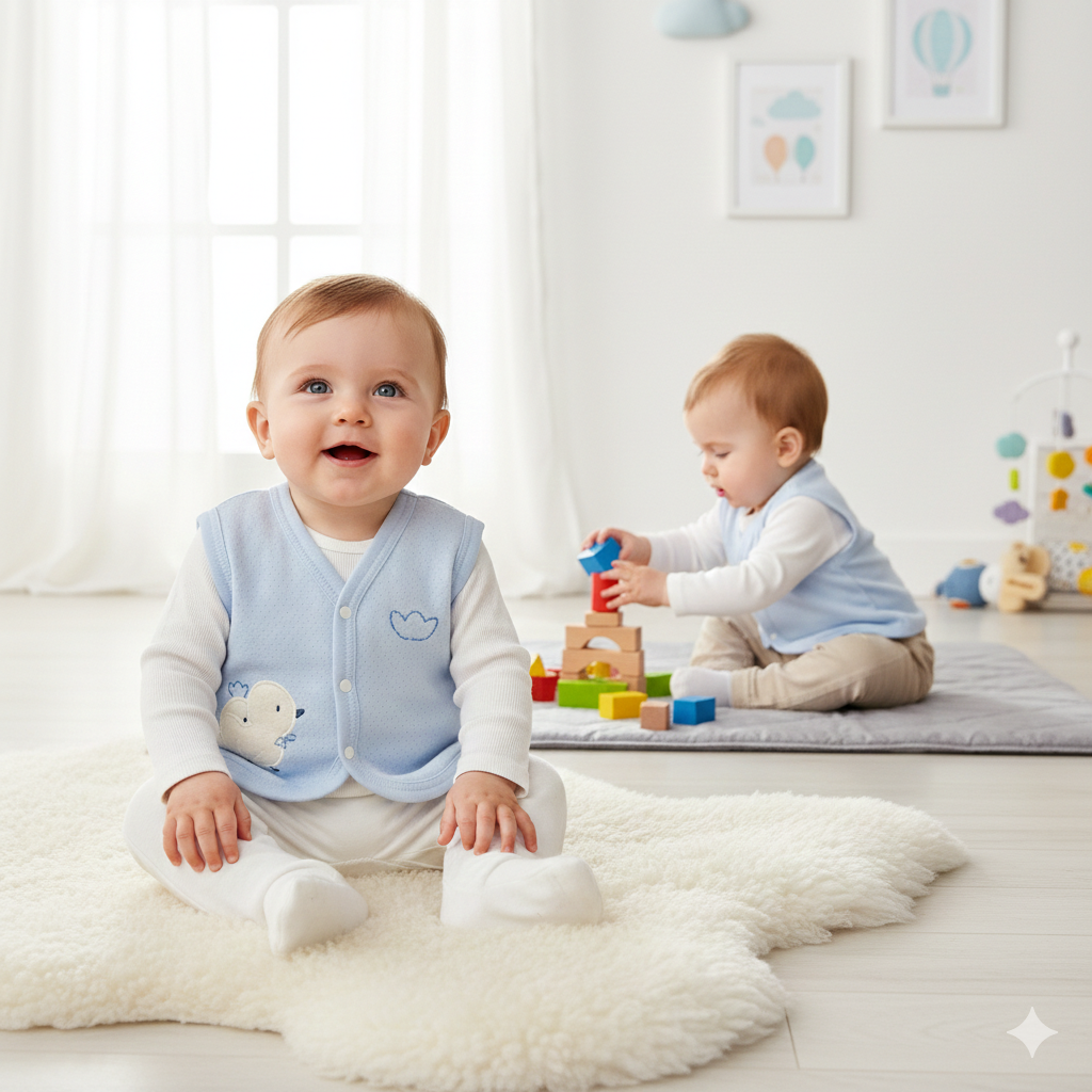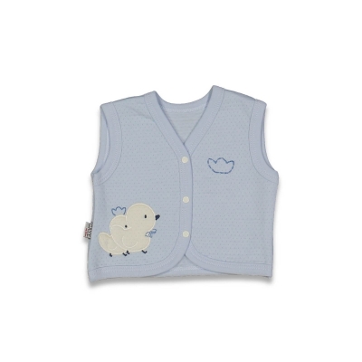 Erkek Bebek civciv baskılı kapitone mavi renk yelek