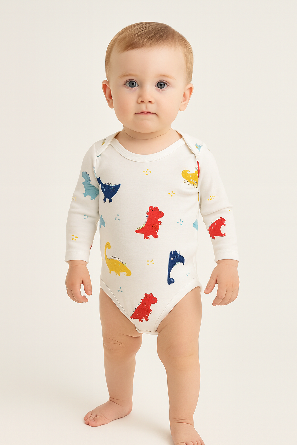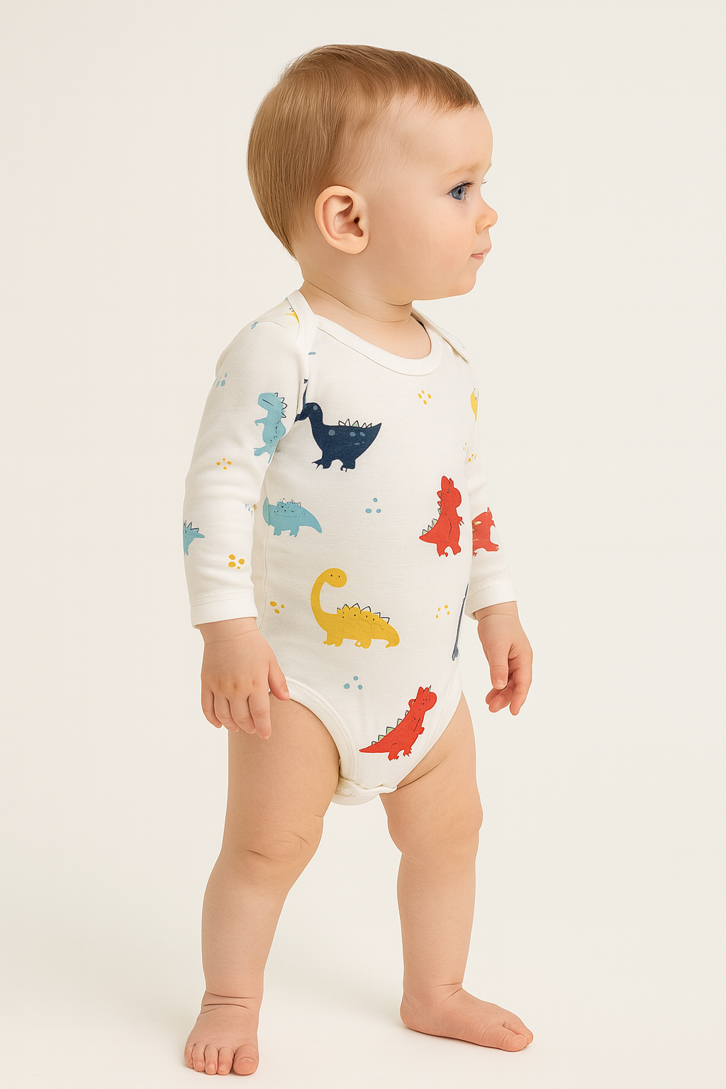Erkek bebek dinazor baskılı uzun kollu çıtçıtlı bady