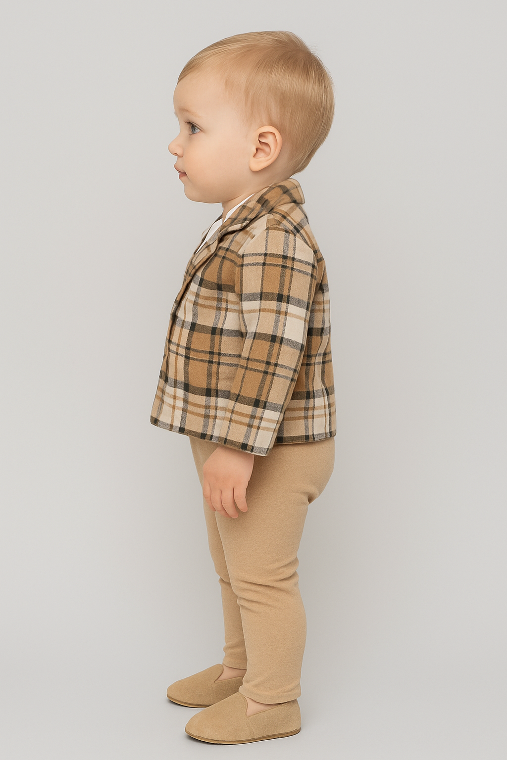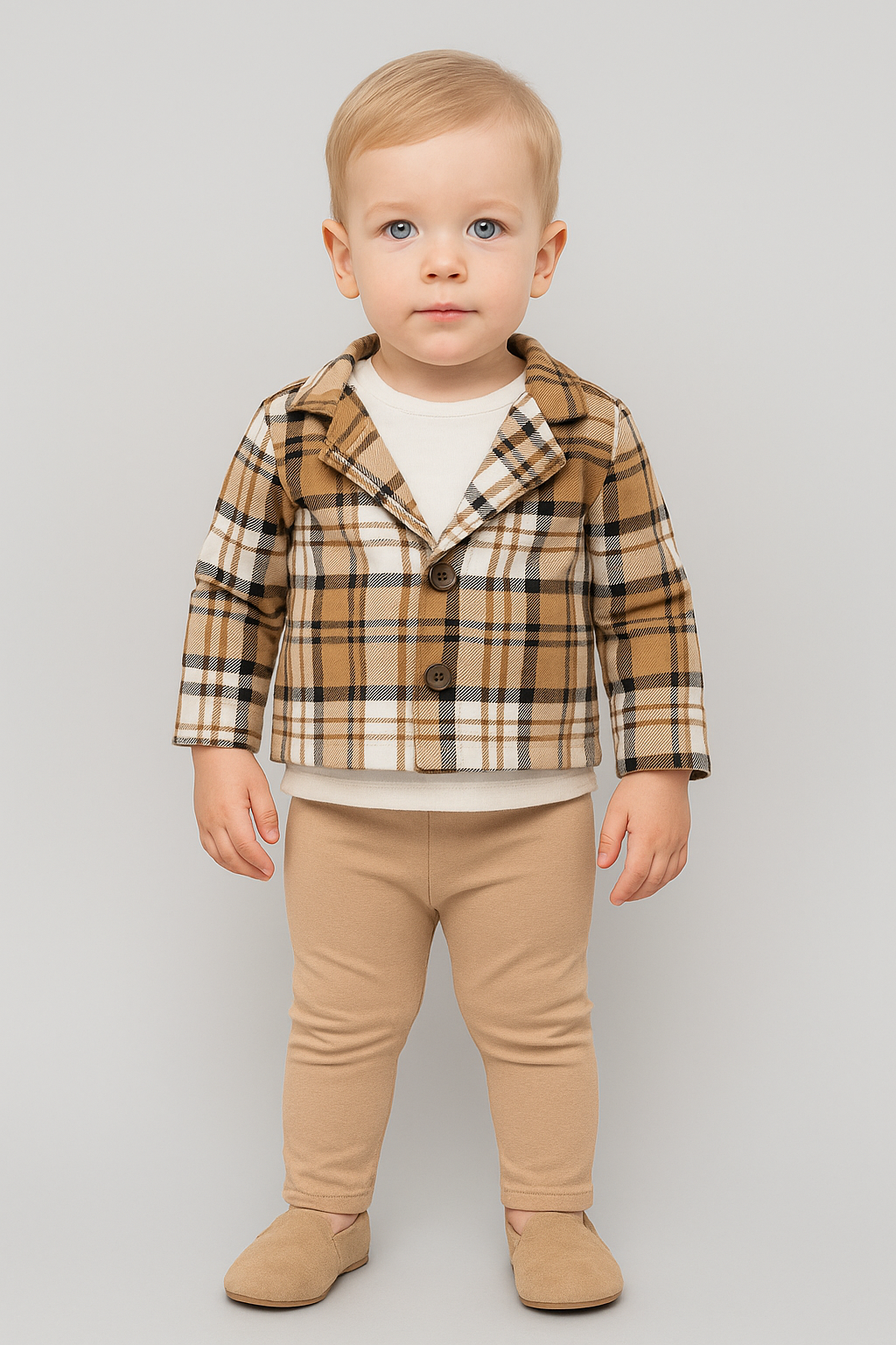 Erkek Bebek ekoseli ceket- sweat- pantolon takım