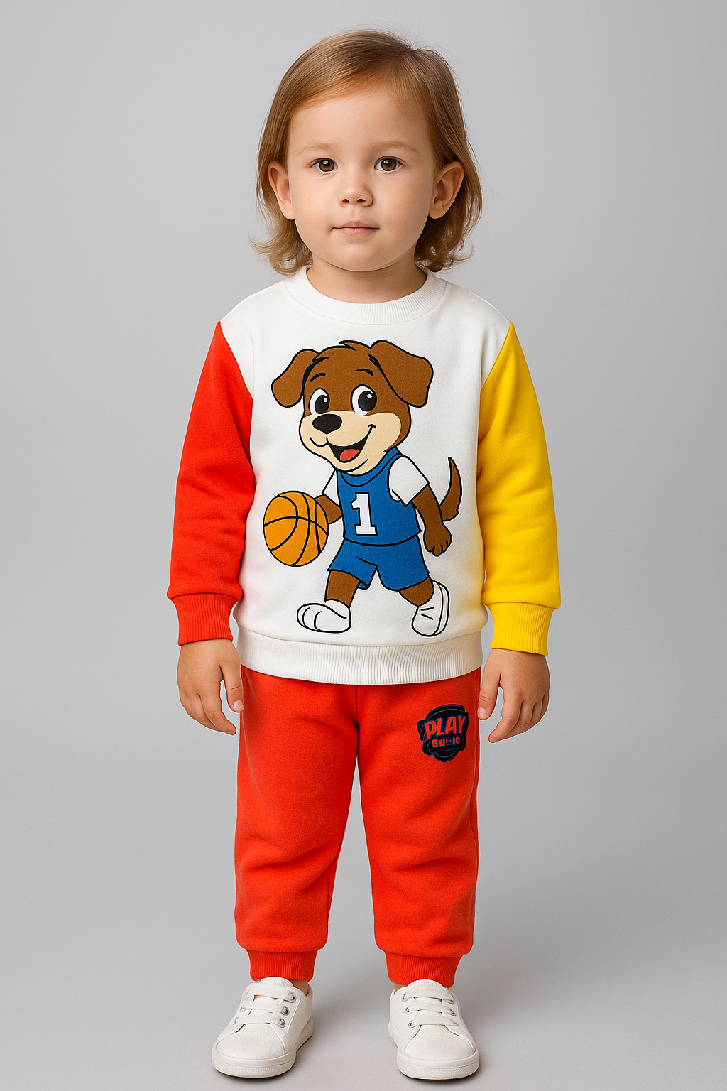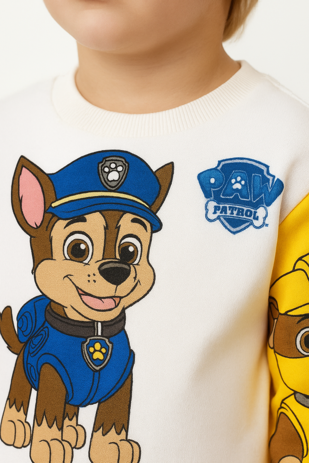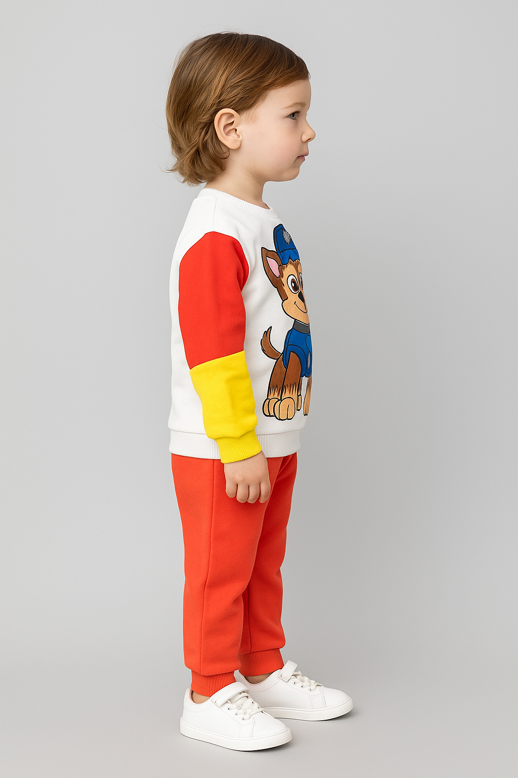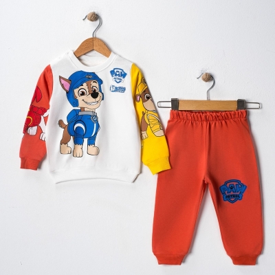 Erkek Bebek paw petrol baskılı uzun kollu pamuklu takım