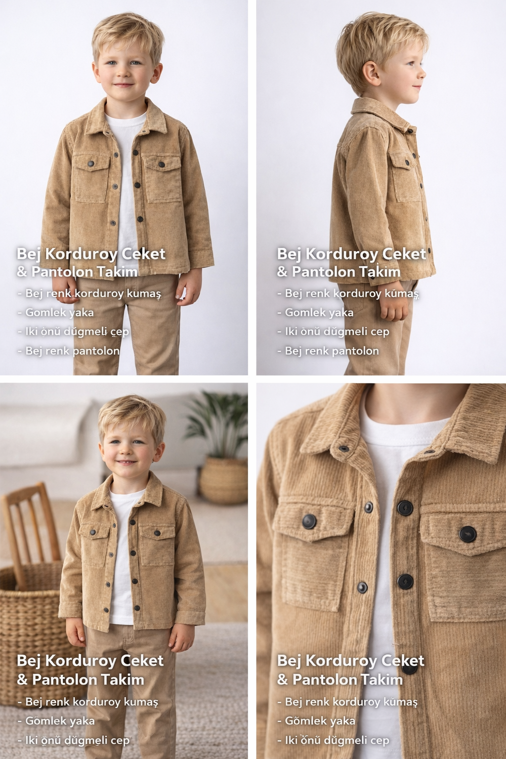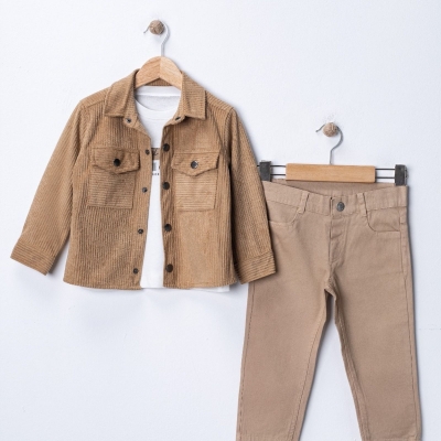 Erkek Çocuk çıt çıt kapamalı- cepli kadife gömlek -uzun kollu bady- kanvas pantolonlu takım