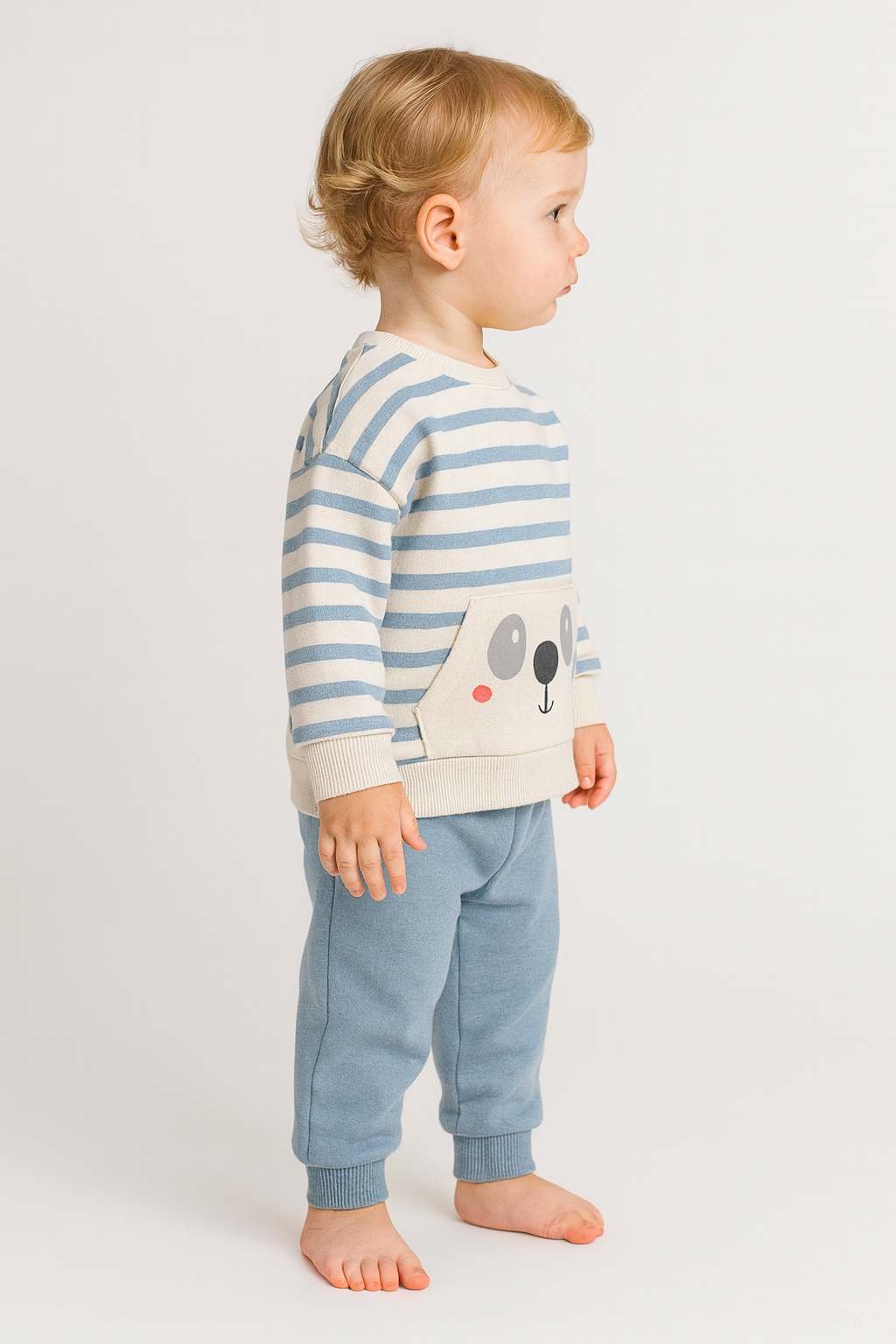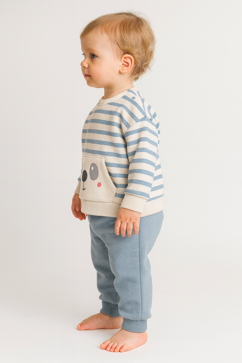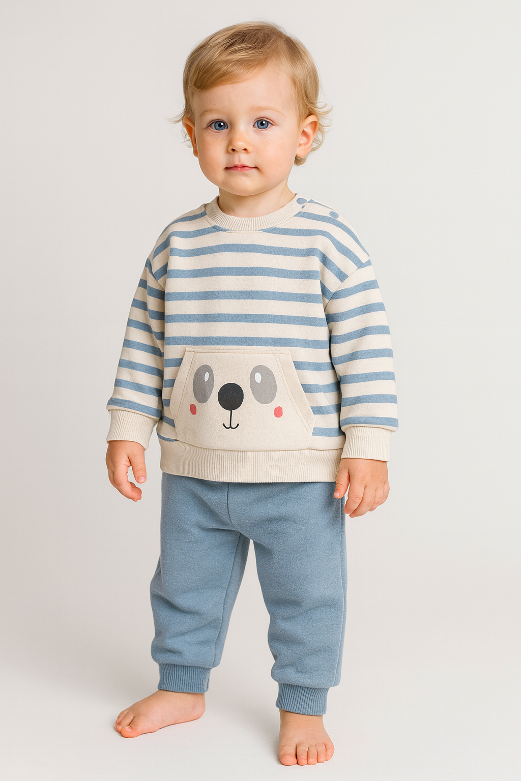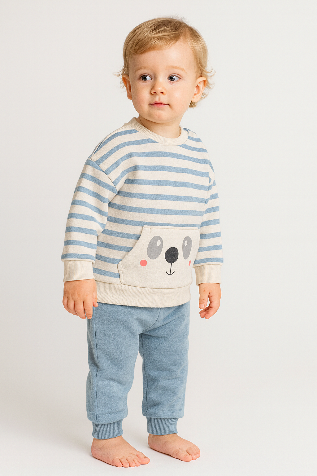 Erkek Çocuk çizgili - köpek yüz baskılı -iç kısmı şardonlu takım