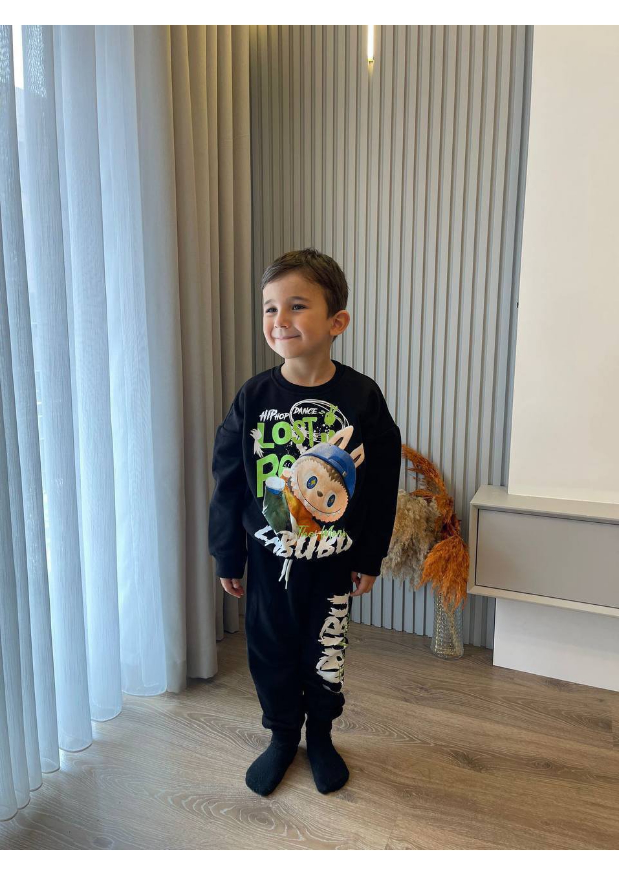 Erkek Çocuk labubu baskılı siyah renk takım