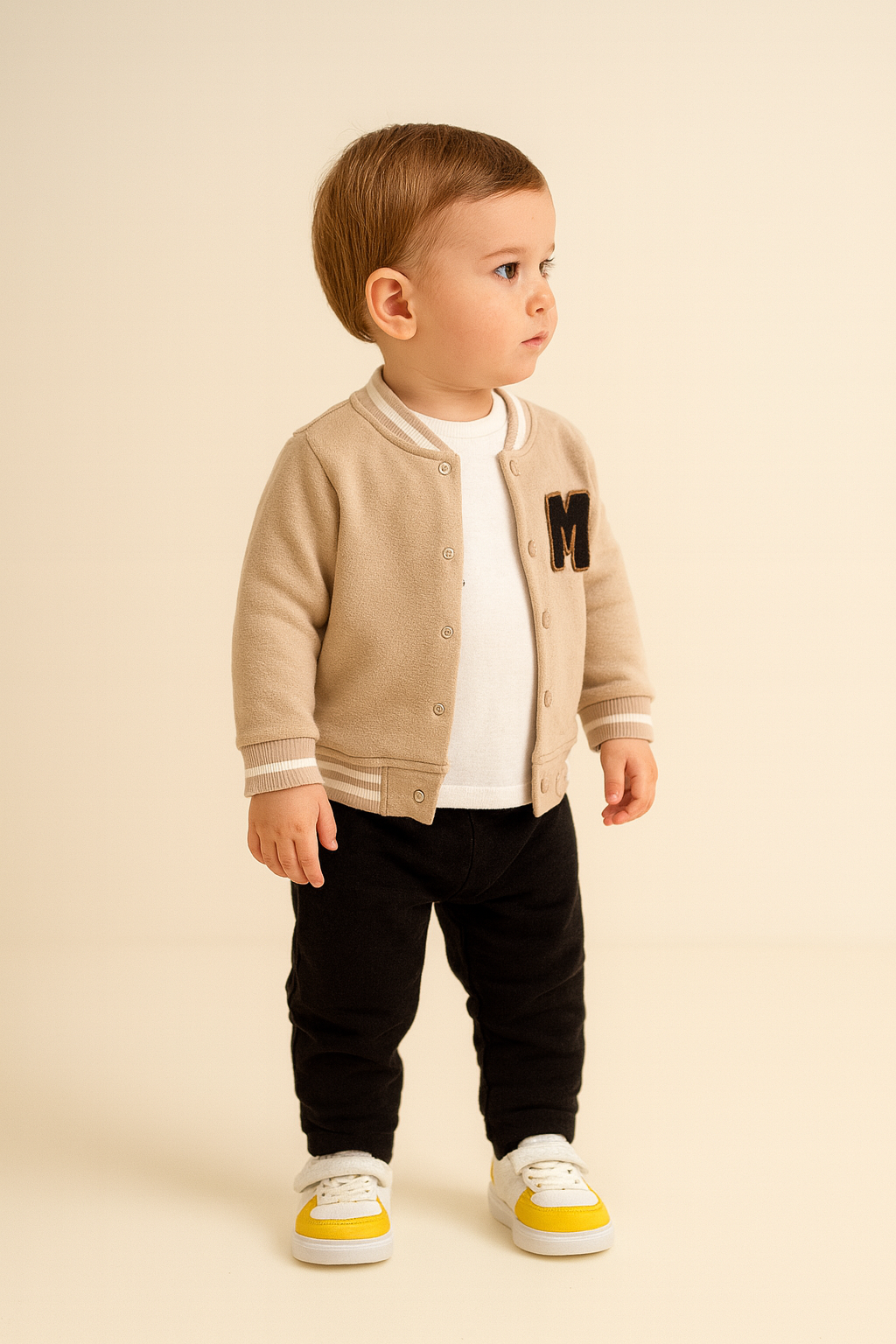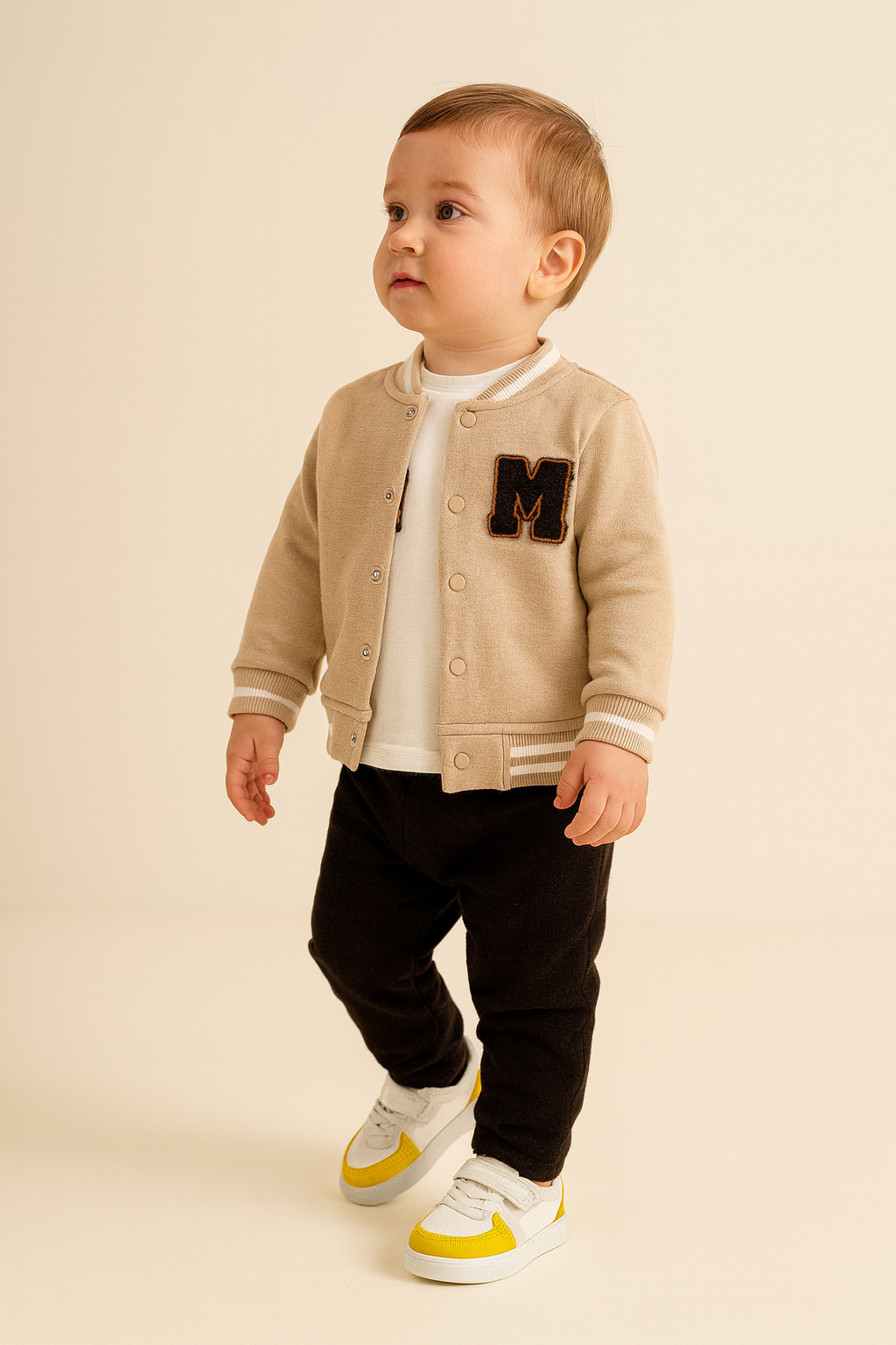 Erkek Çocuk m baskılı kolej ceketli -şardonlu 3lü takım