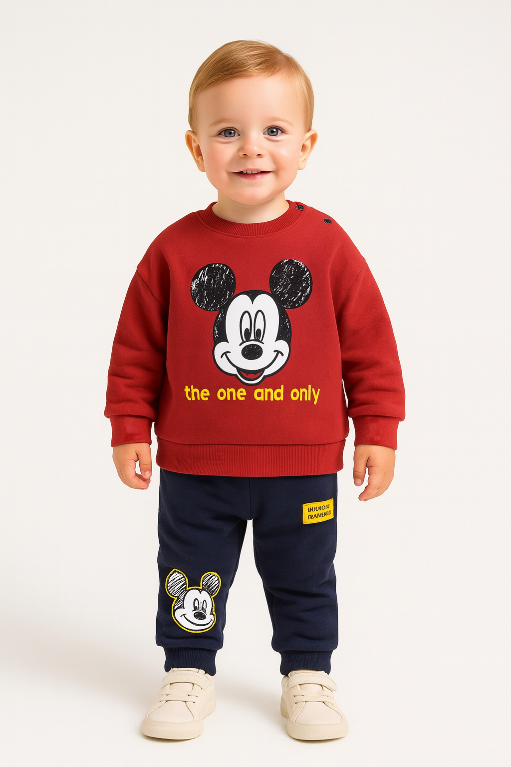 Erkek Çocuk mickey mouse baskılı the one and only yazılı şardonlu takım