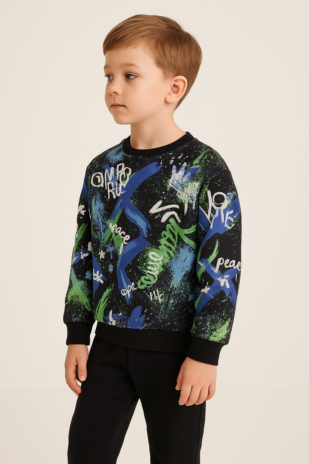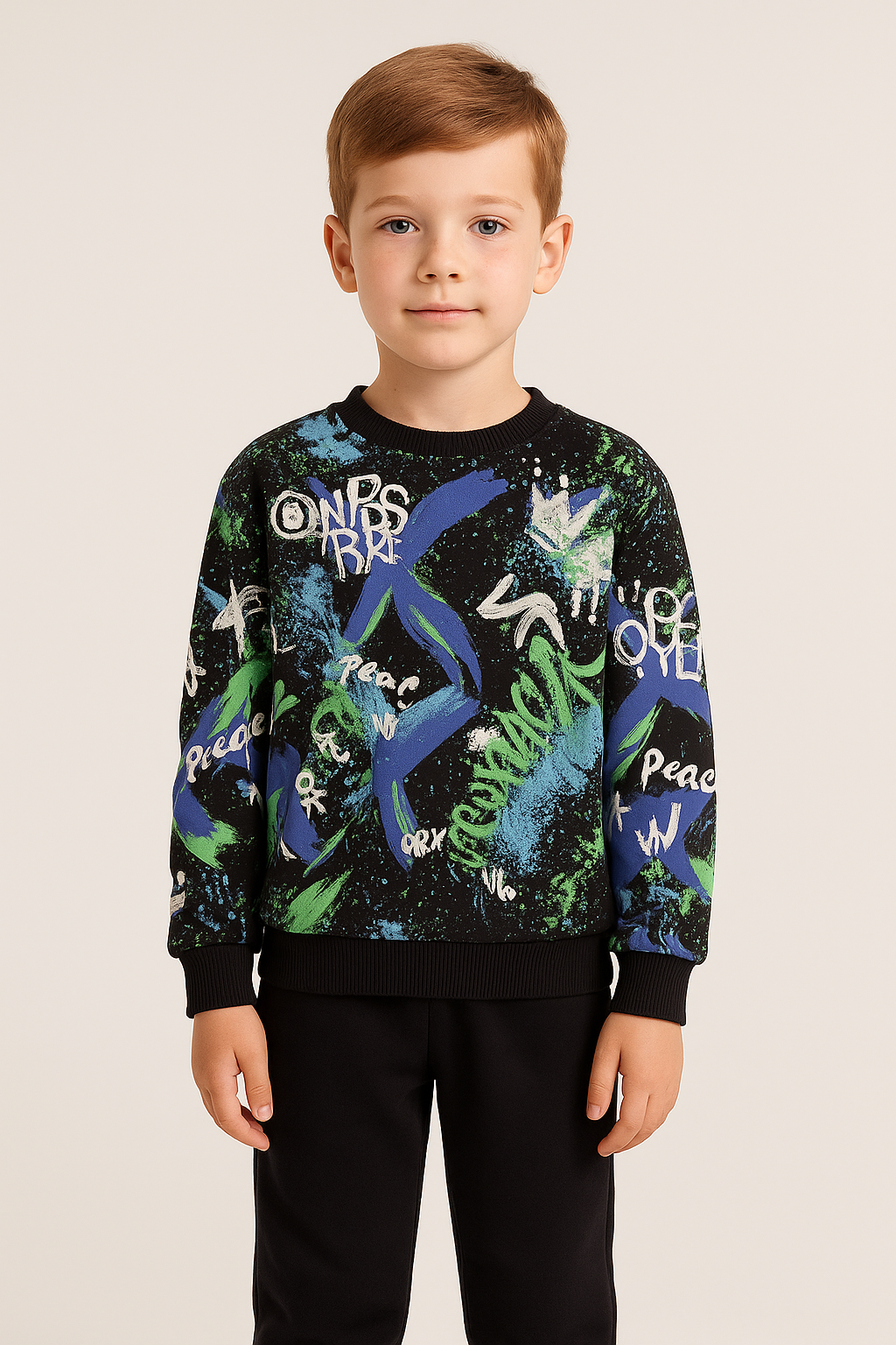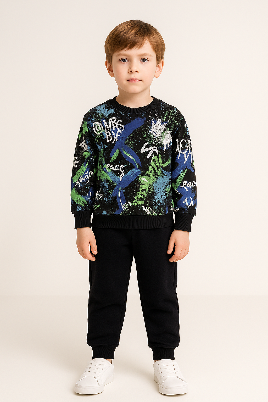 Erkek Çocuk yazı baskılı siyah renk eşofman takım