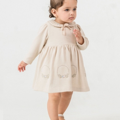 Kız Bebek çiçek nakışlı -uzun kollu- fitilli elbise