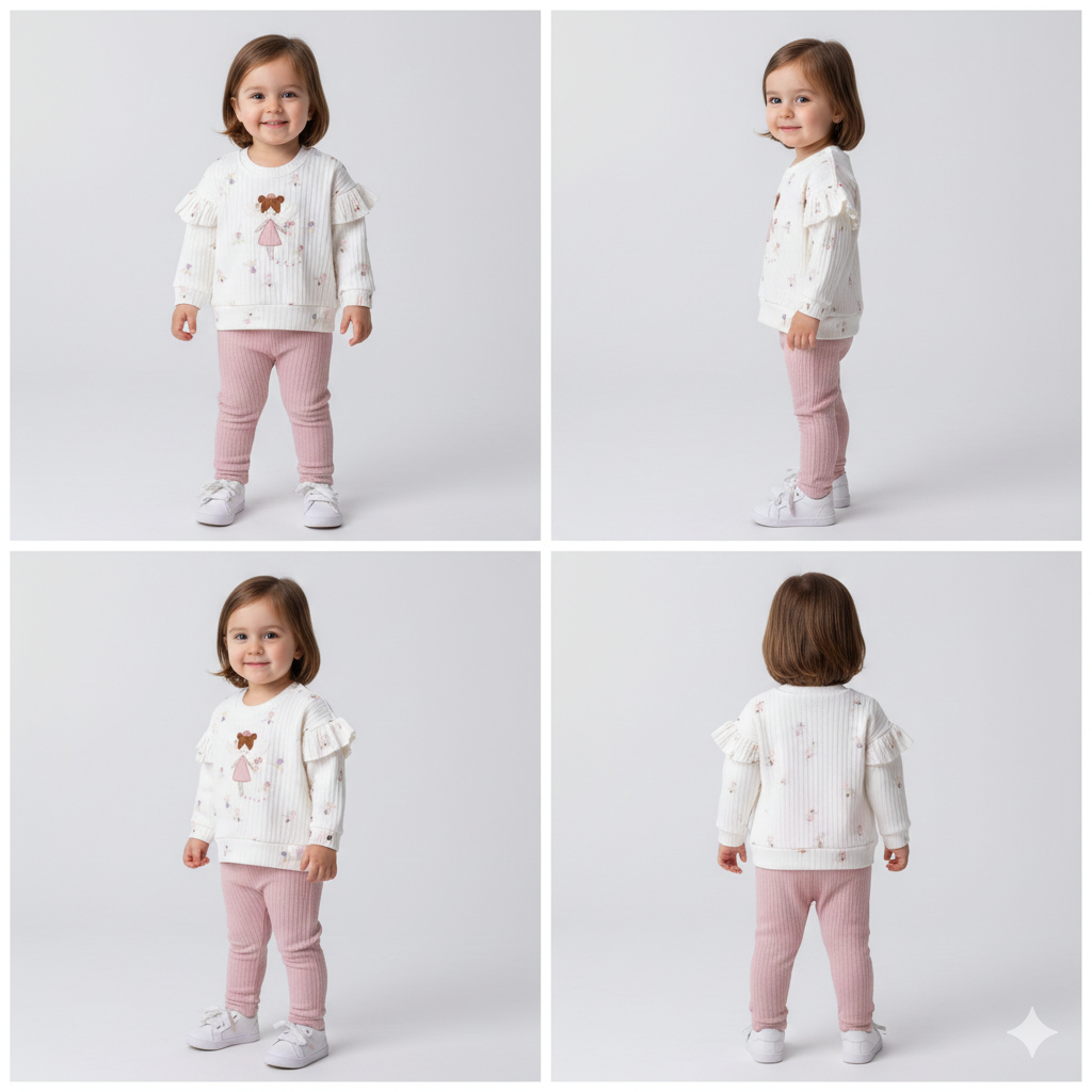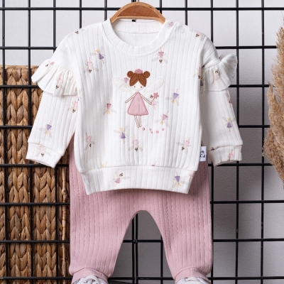 Kız Bebek kanatlı prenses detaylı uzun kollu omuz kısmı fırfırlı pamuklu takım