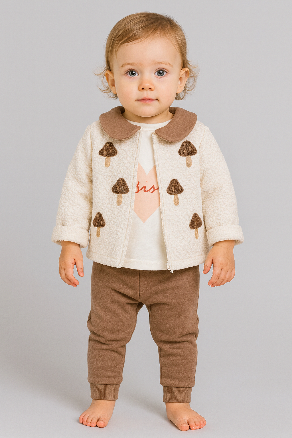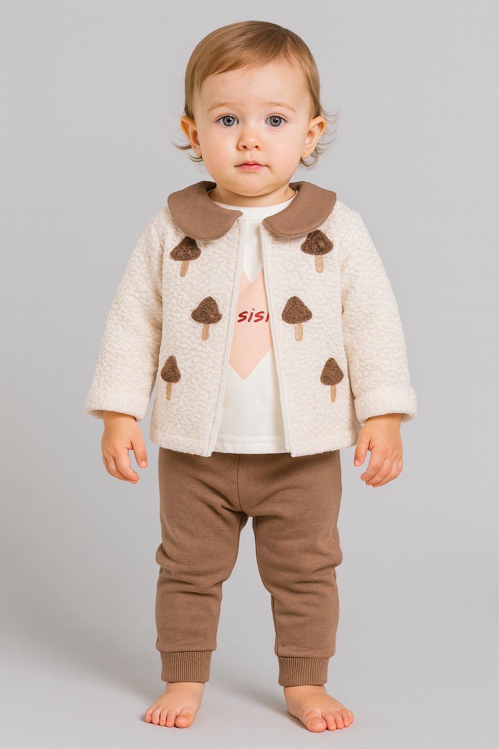 Kız Bebek mantar baskılı welsoft ceketli 3lü takım