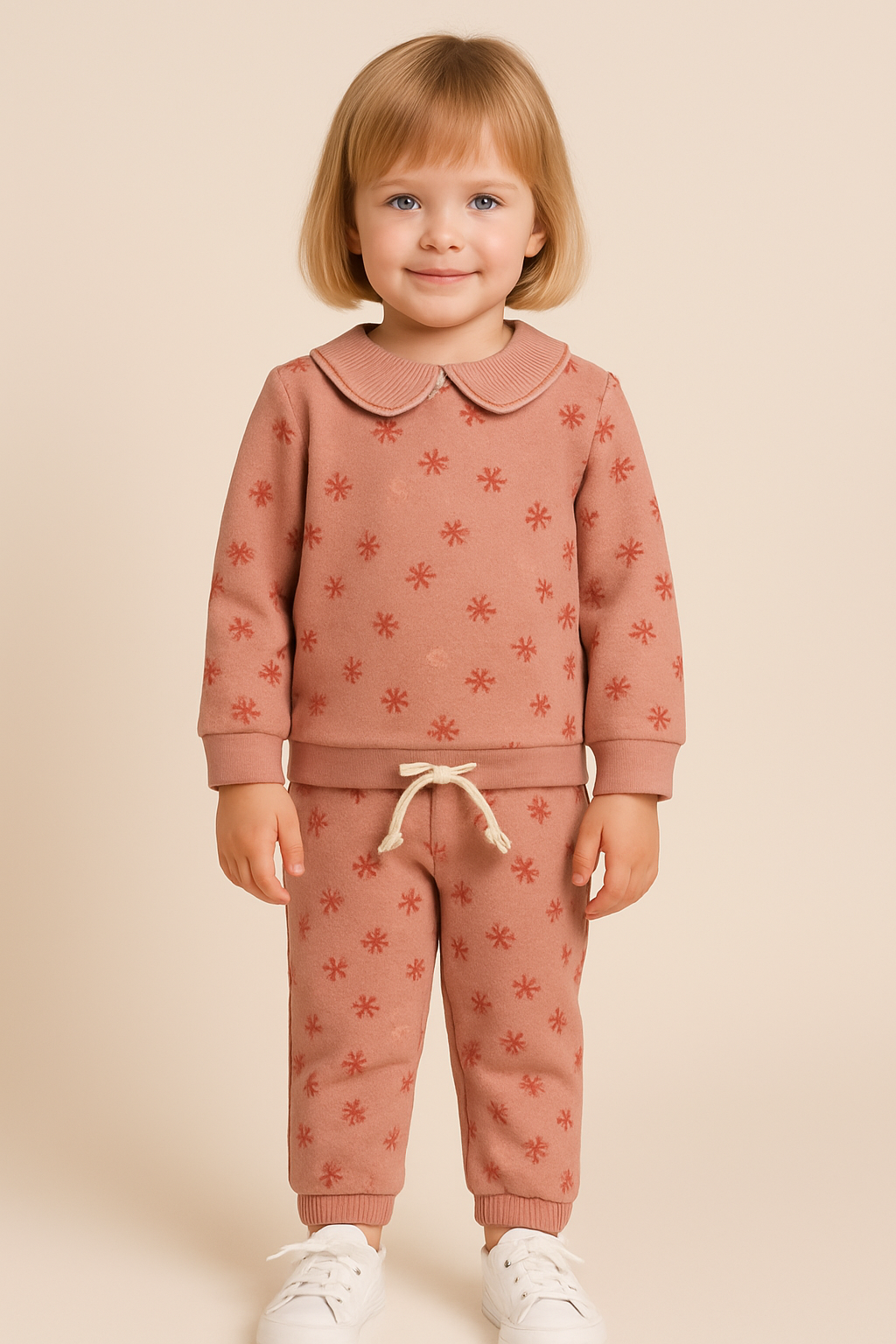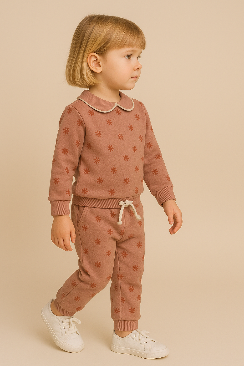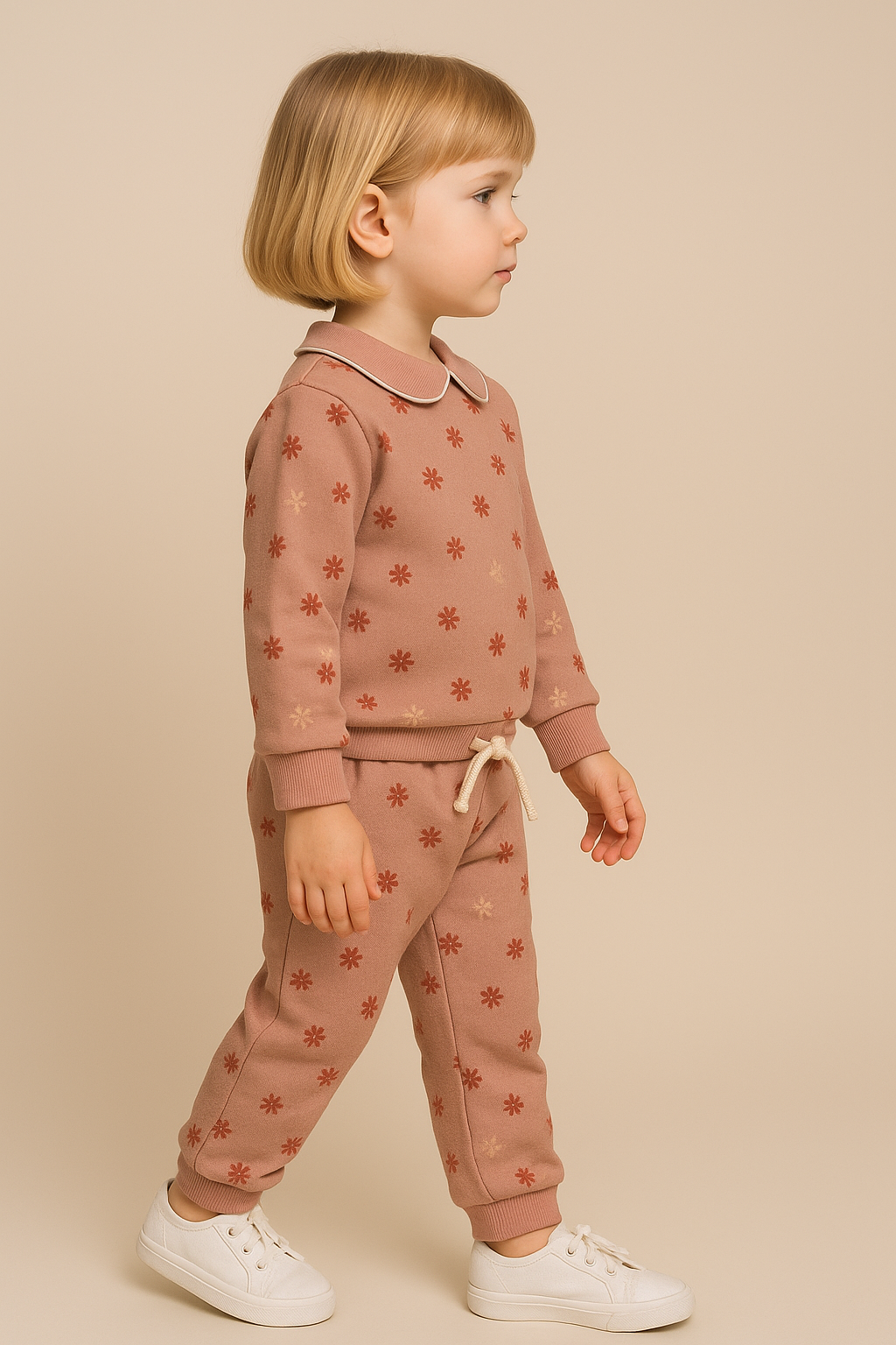 Kız Çocuk çiçek desenli bebe yakaılı uzun kollu takım