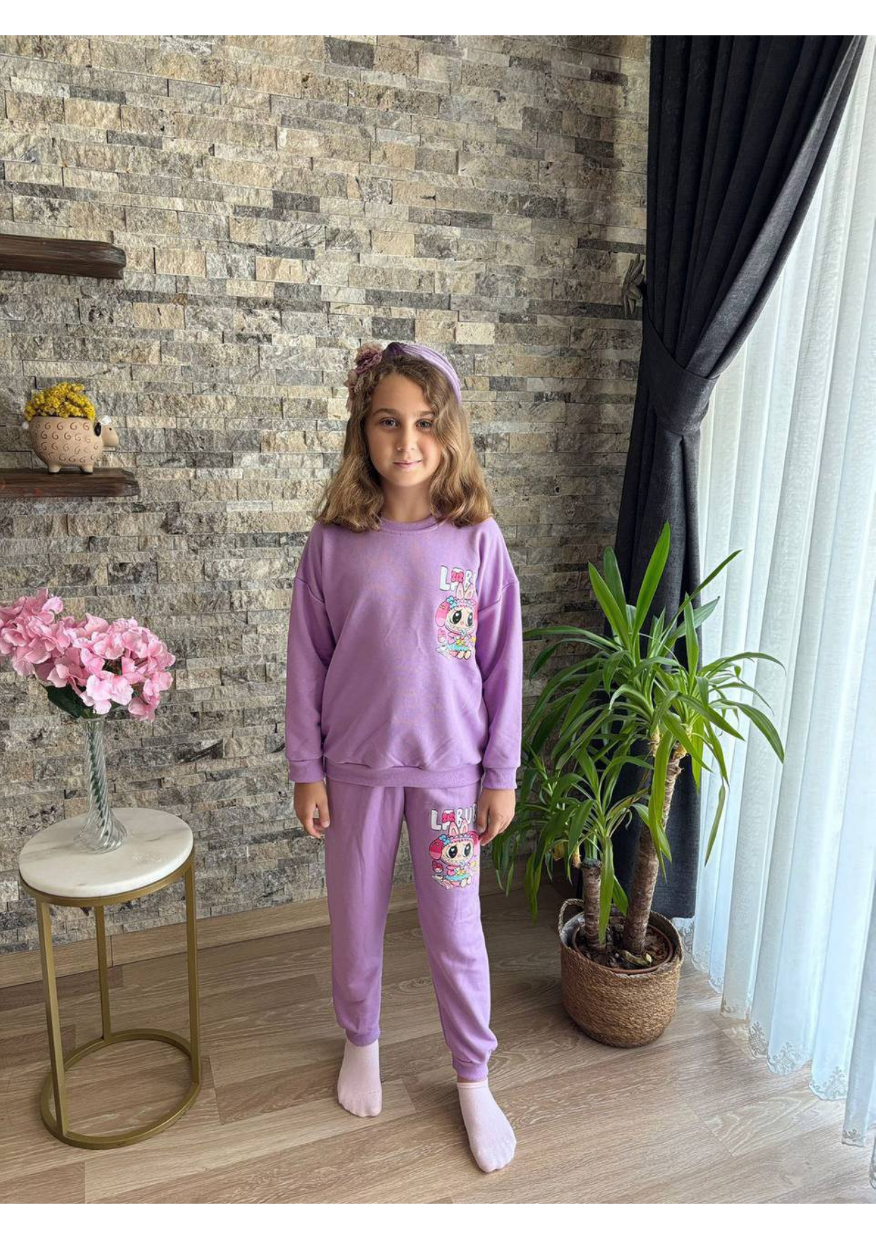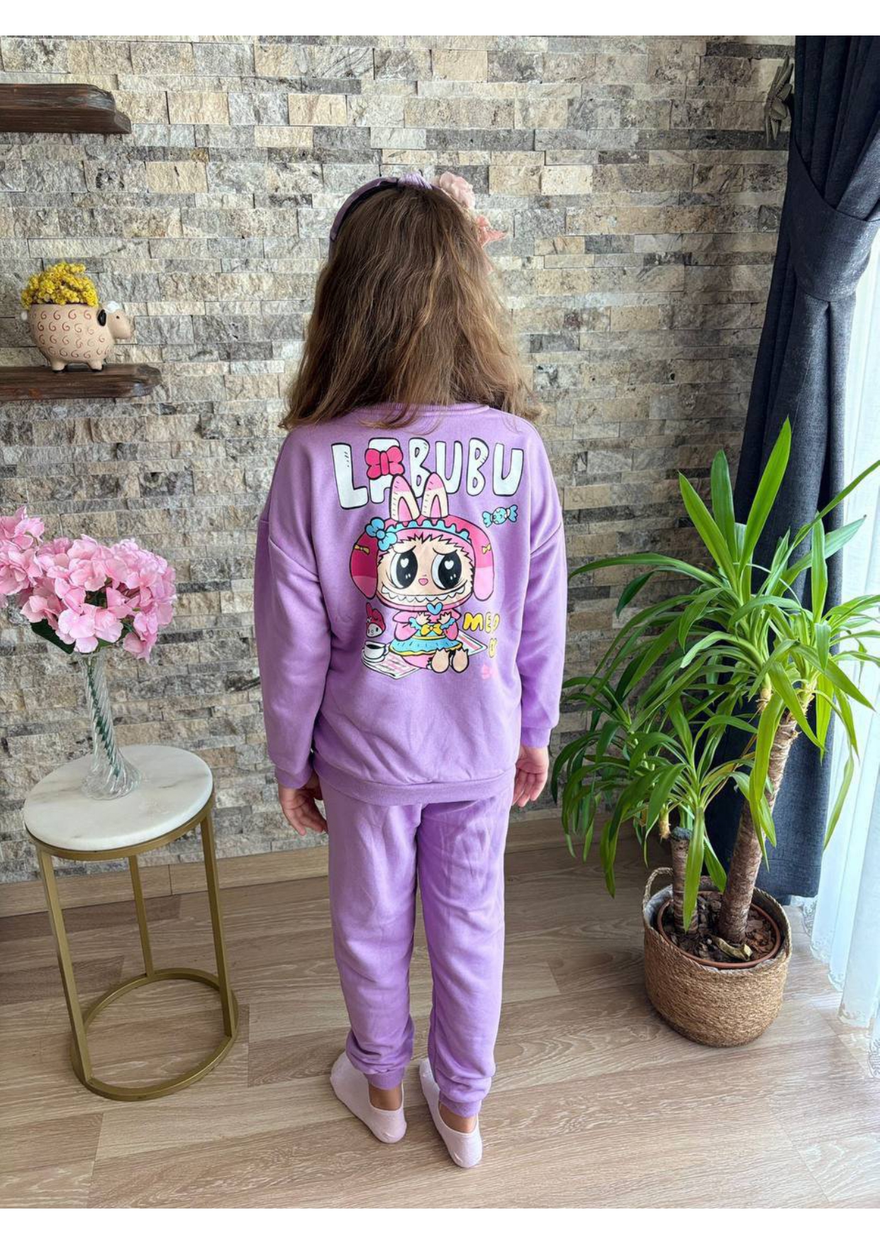 Kız çocuk labubu baskılı mekody yazılı more renk takım