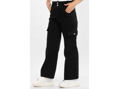 Kız Çocuk yüksek bel kargo cepli gabardin pantolon