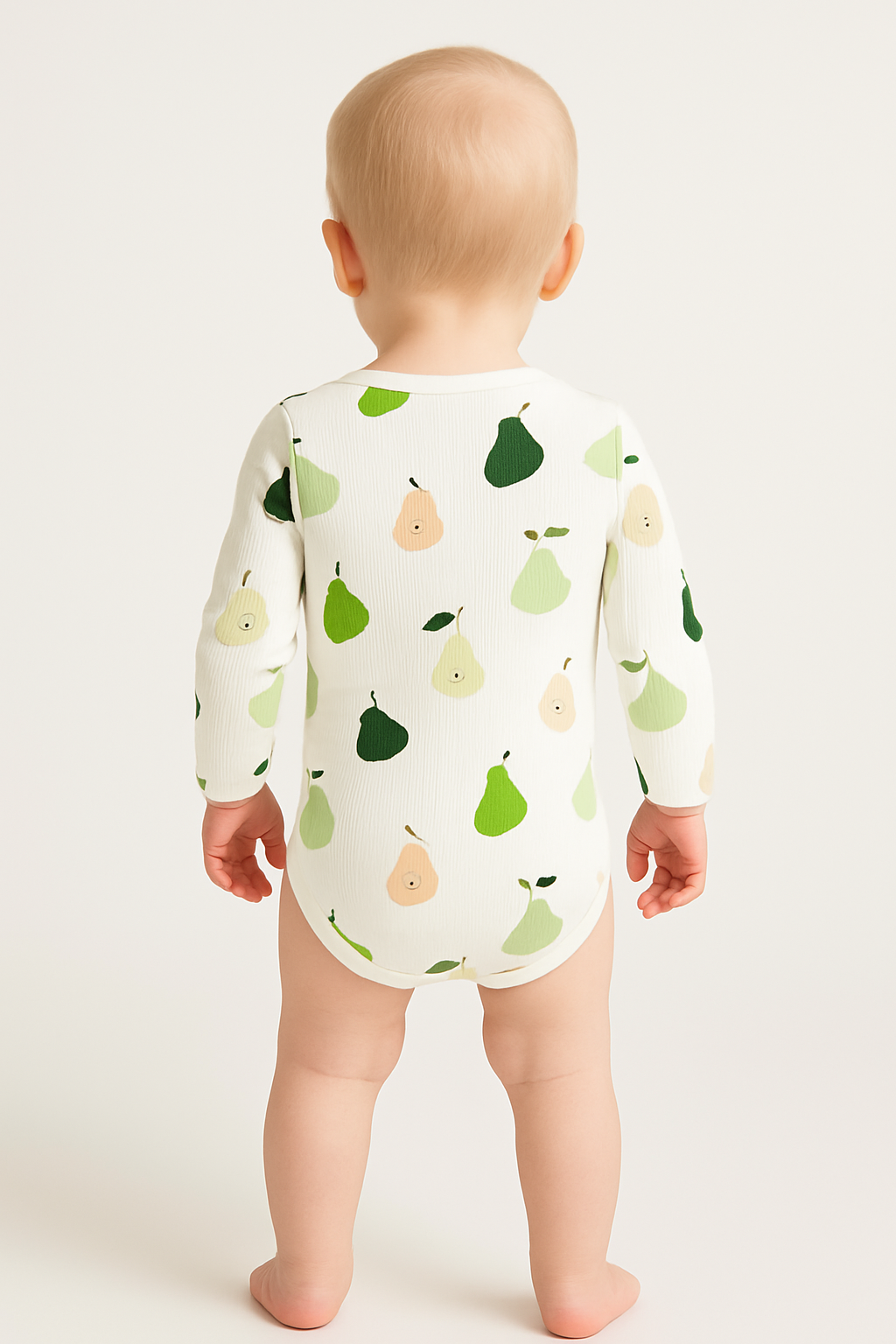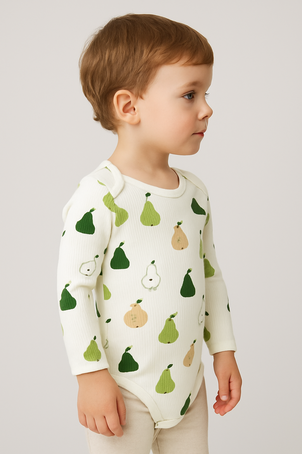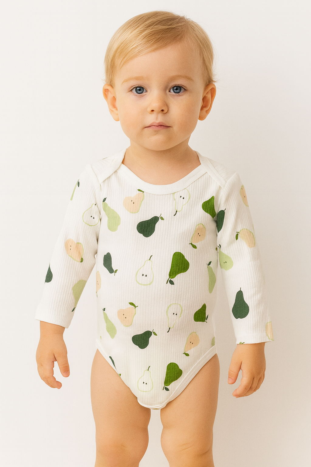 Unisex armut desenli uzun kollu çıtçıtlı bady