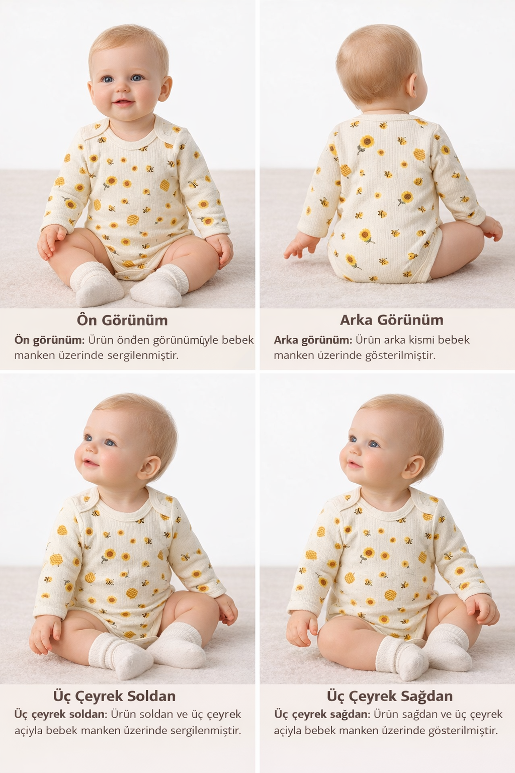 Unisex çiçek ve arı desenli uzun kollu çıtçıtlı bady